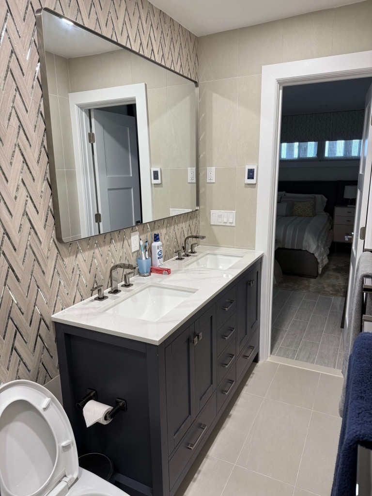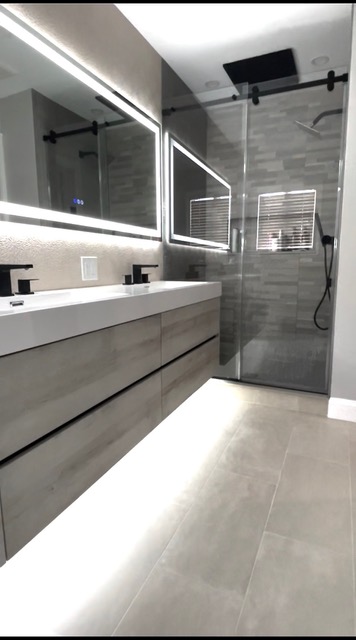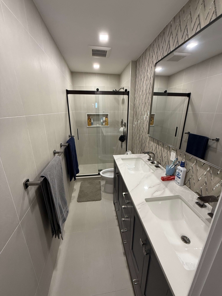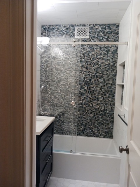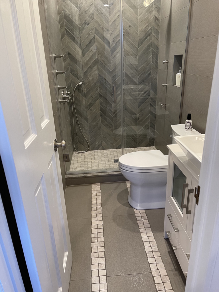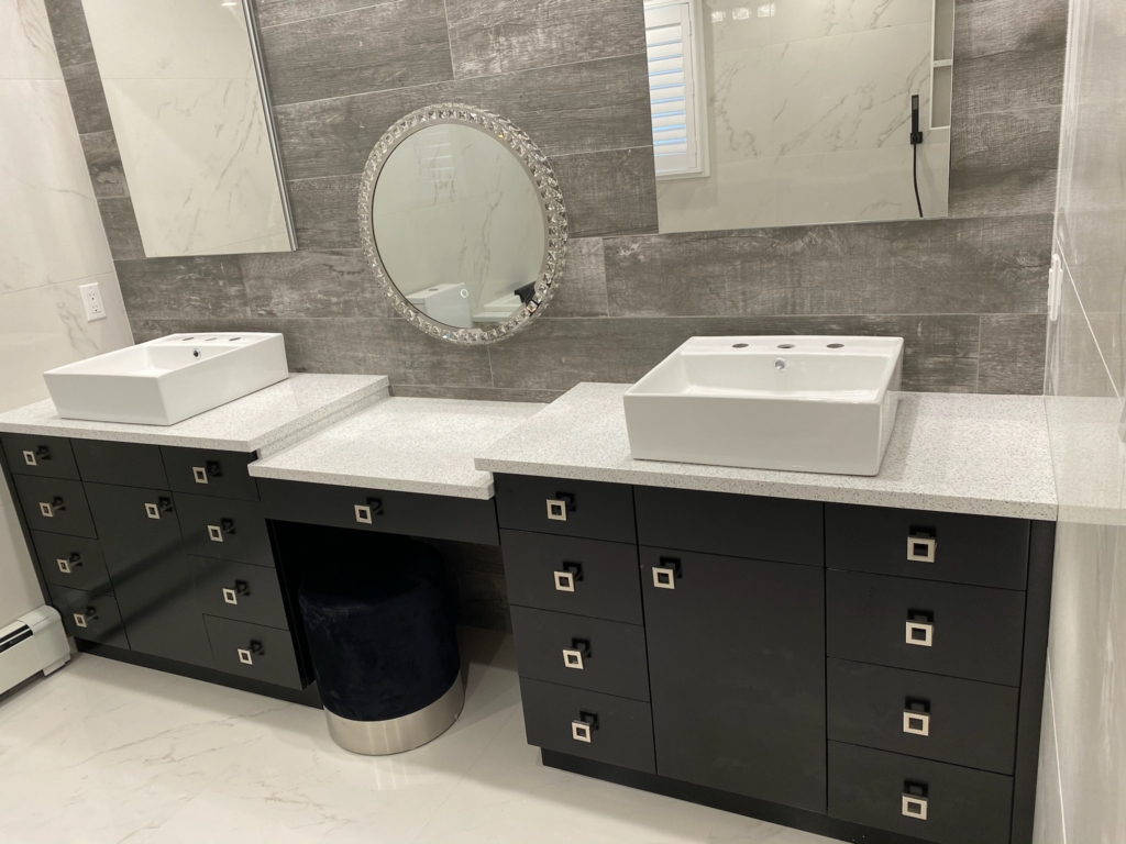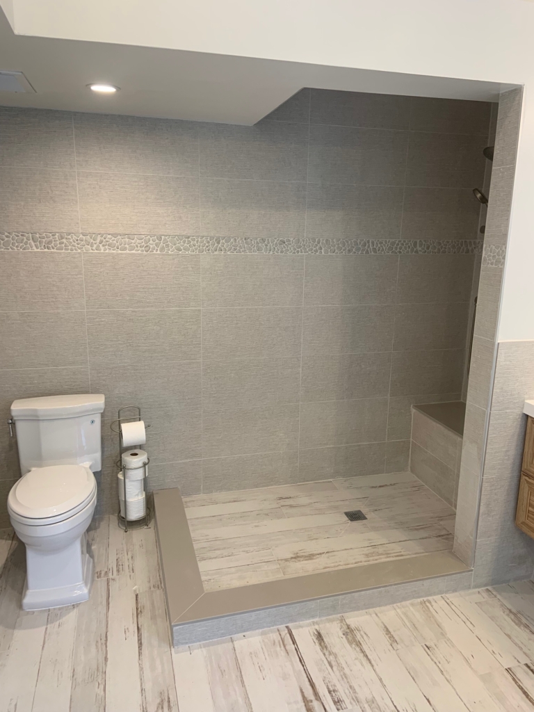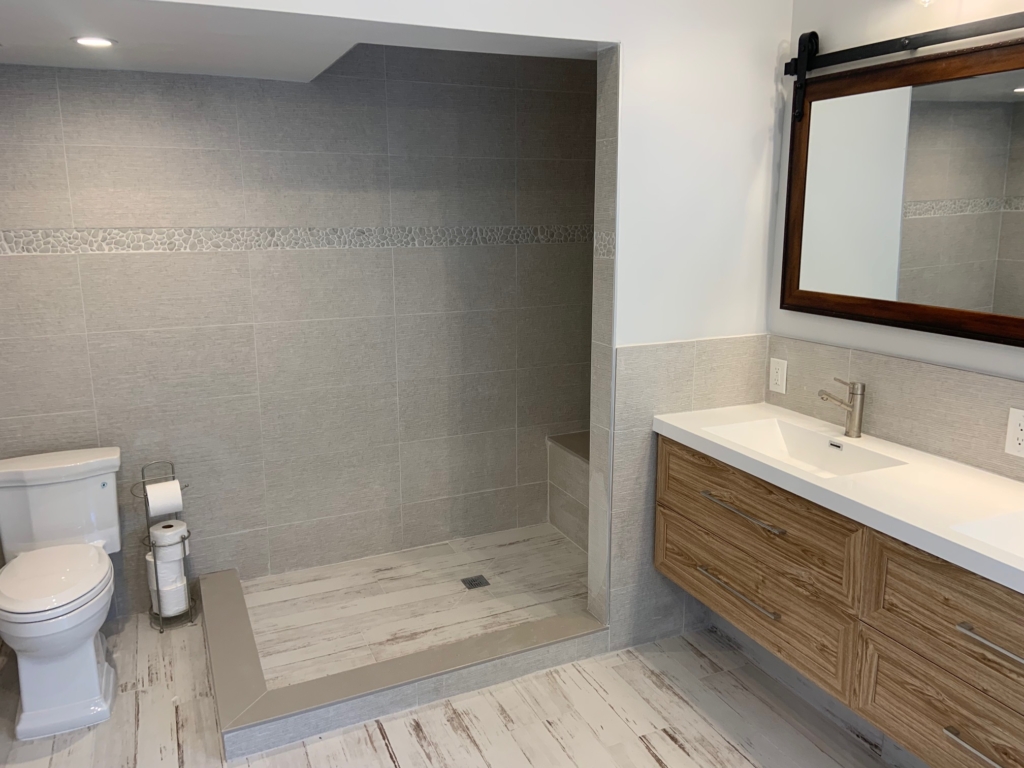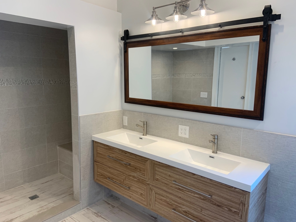 We do direct replacement or completely new layouts including vaulted ceilings, redesigning of the space with removal of walls and headers with new arrangement of vanity, cabinets, toilet, tub, tile work – floors, walls, enclosure, as well as: