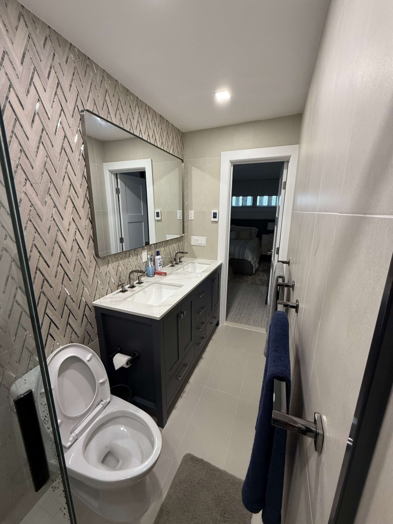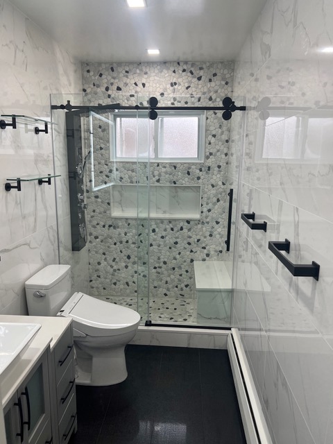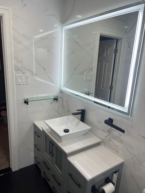 We can do direct replacement of your bathroom, or a completely new layout and design, with re-arrangement of your space, and replacement of walls, floors, doors, windows, etc.